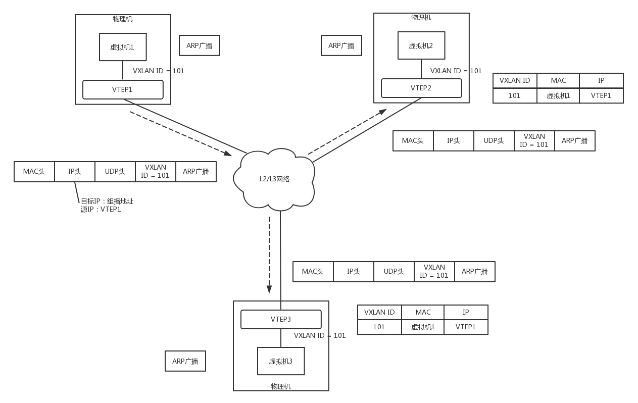 当然这个包发出去之后,还是会被物理机上的OVS放入VXLAN隧道里面,网络包格式为:
